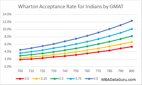 If you are applying to Stern, it is pretty obvious that having a higher GMAT is important and will significantly raise your chances of being admitted. To create the graph above, I used my model with the average GPA of 3.45.