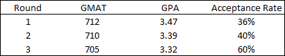 Since this data does not have gender included, it is possible that the acceptance rates are skewed by gender concentrations. More women tend to focus on Nonprofit, Social Entrepreneurship, Marketing and Healthcare, which could have bumped up the acceptance rate. Many schools are trying to increase their female enrollment, so women tend to have higher acceptance rates. At the other end of the spectrum, industries such as Operations and Technology are more dominated by men, which likely led to the low acceptance rates in those concentrations.