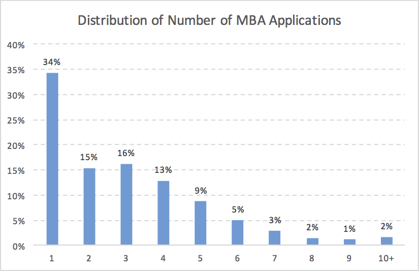 Many business school applicants wonder how many MBA applications they should submit? In this article, I will discuss the optimal MBA application number based on real data. Deciding on your MBA application number is challenging because the more schools you apply to, the less time you have to spend on each application. On the other hand, you don’t want to put all of your eggs into one or two baskets. The data suggests that the ideal number of MBA applications is 5 to 7. For more information, check out this article on how to build your portfolio of MBA applications co-authored by Lawrence Linker and I.
