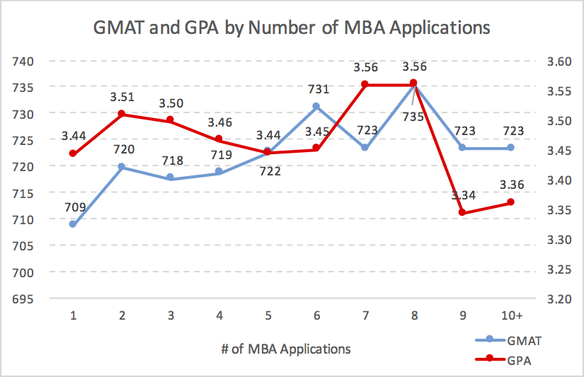 GMAT and GPA by Number of MBA Applications