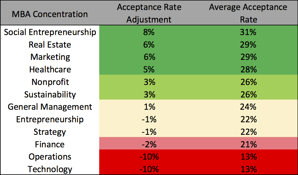 Ranked 11 – 16 MBA Acceptance Rate by Major